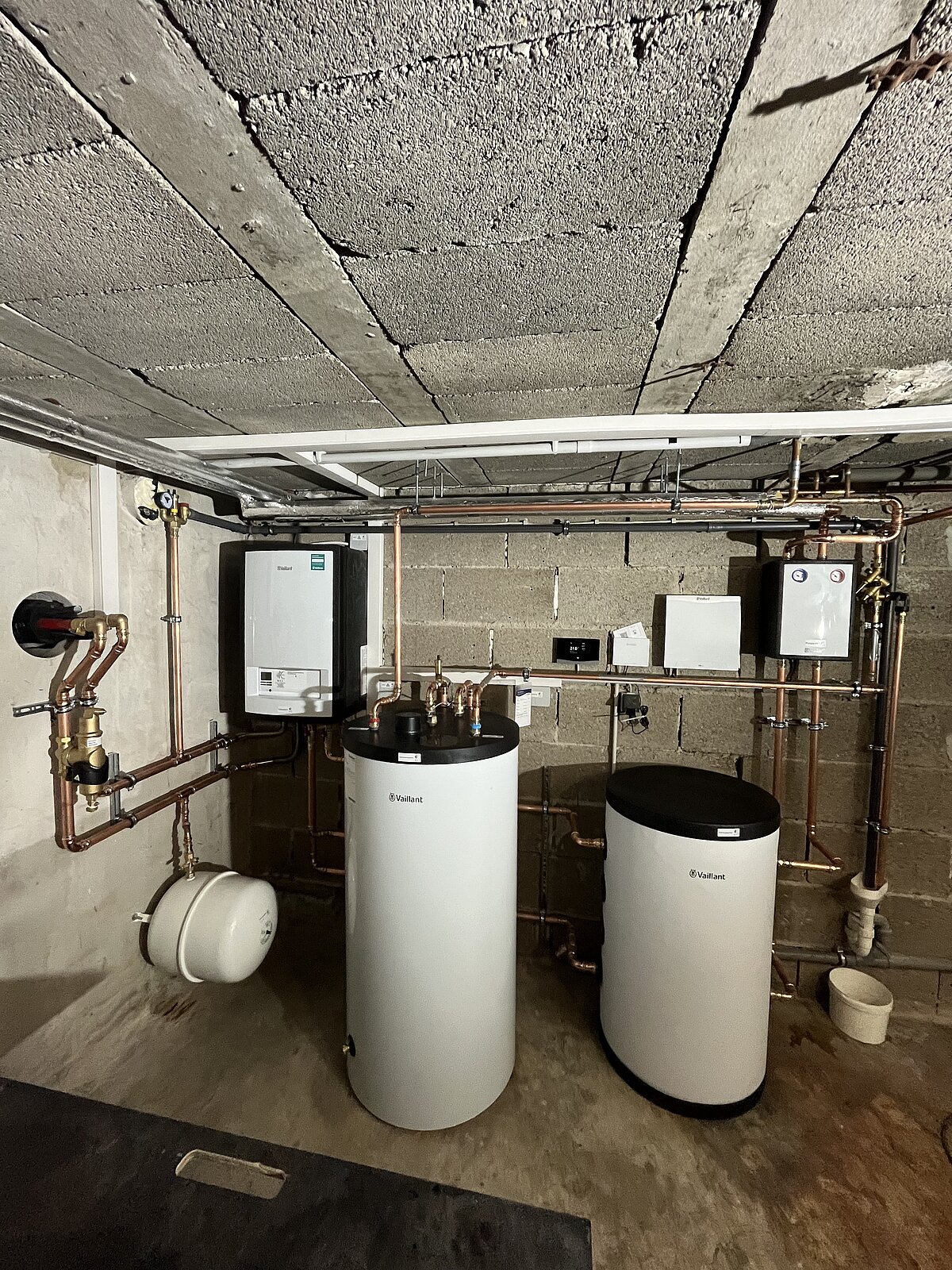 - Aufbau der neuen Heizungszentrale und des Wärmepumpensystems